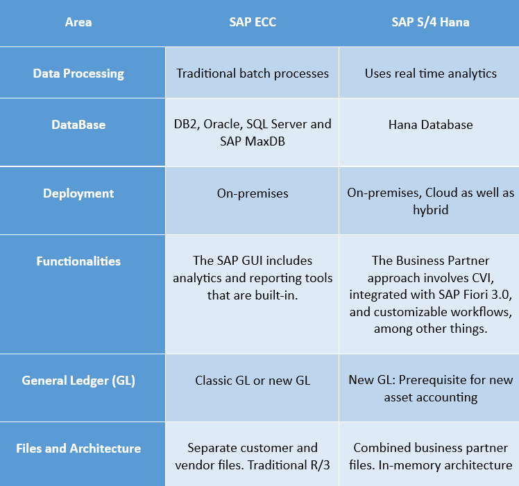 SAP ECC is the abbreviation for ERP Central Component, which is a modular-based architecture that allows businesses to select and integrate only the modules they require. Enhanced customization is available for companies of all sizes and industries. The primary deployment of SAP ECC is on-premises infrastructure, which includes in-house servers, infrastructure, and databases. It offers support for multiple databases, including IBM DB2, Microsoft SQL Server, and Oracle databases. Business functions can be managed by organizations with its deep integration, flexibility, and scalability to manage operational processes, such as finance, human resources, and supply chain management.